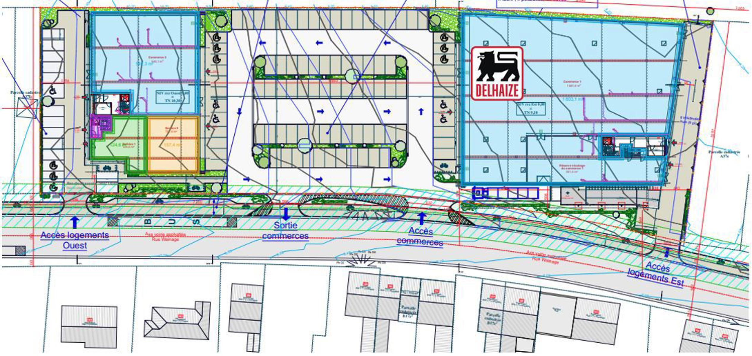 Delhaize sera présent avec une surface commerciale de 1803m² .